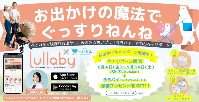 ベビーカーレンタルサービス「ベビカル」、乳幼児の夜泣き・寝かしつけサポートアプリ「Lullaby」が共同で「お出かけキャンペーン」を開始します!