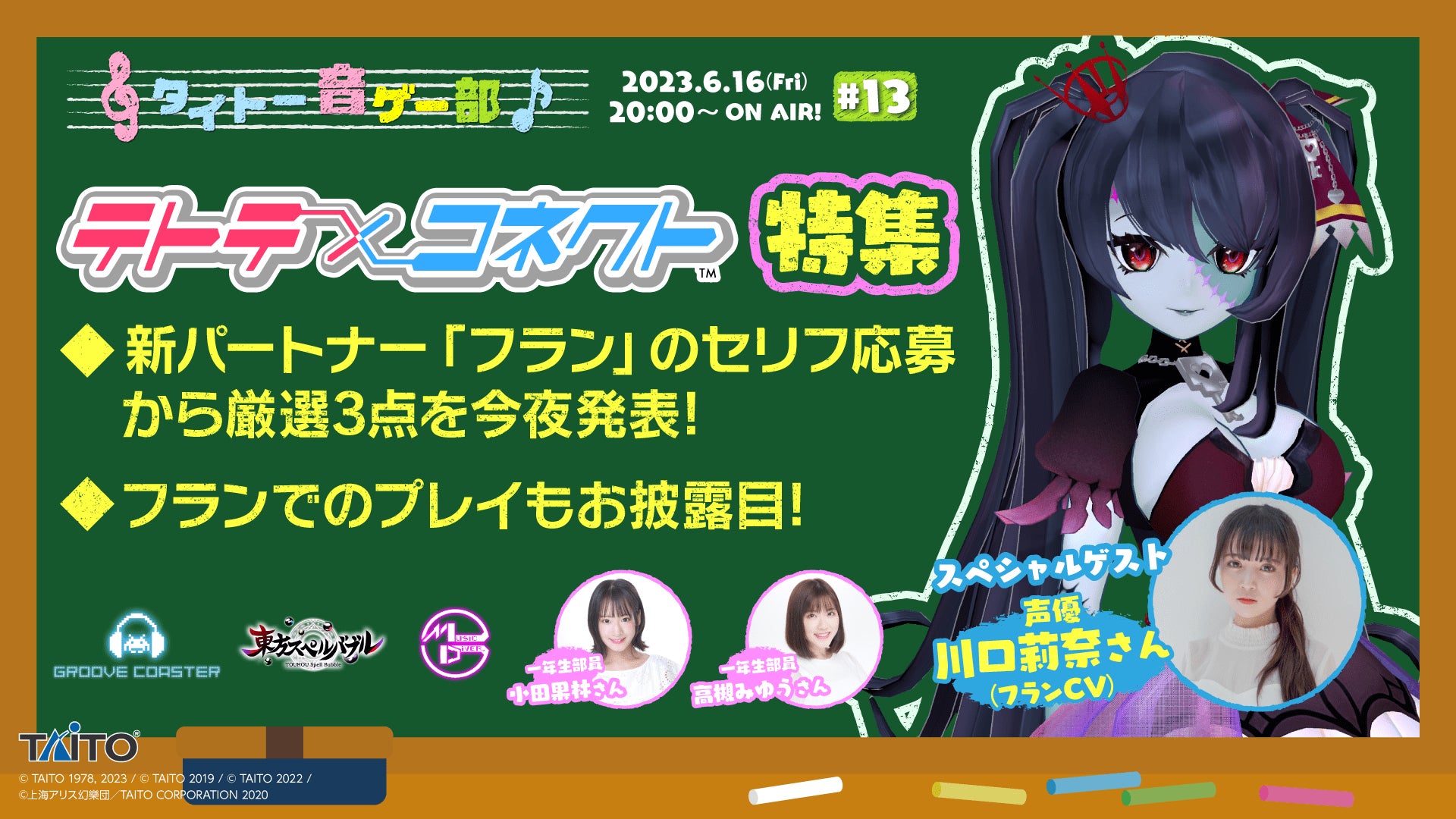 6月16日「タイトー音ゲー部 #13」配信!公募した「フラン」のセリフを大発表!