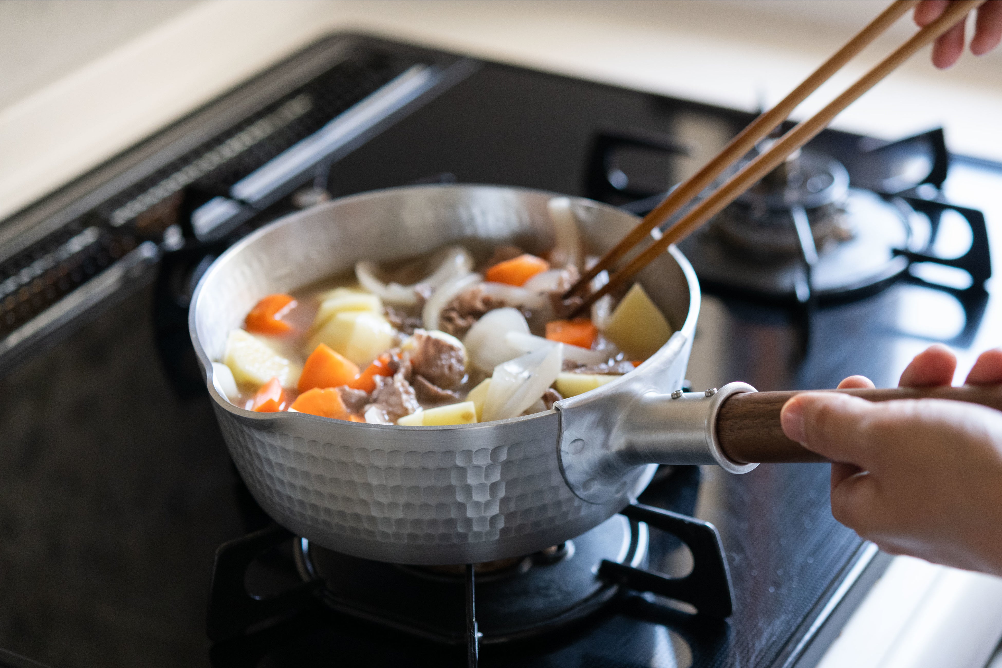 3mmの極厚アルミで作られた「ゆきひら鍋」は、熱ムラが少なく、和食の定番である煮物から、洋風のトマト煮込みやロールキャベツなど、様々な料理がより美味しく仕上がる設計に。料理が得意な人はもちろん、料理が上手くなりたい人や苦手な人にもおすすめです。