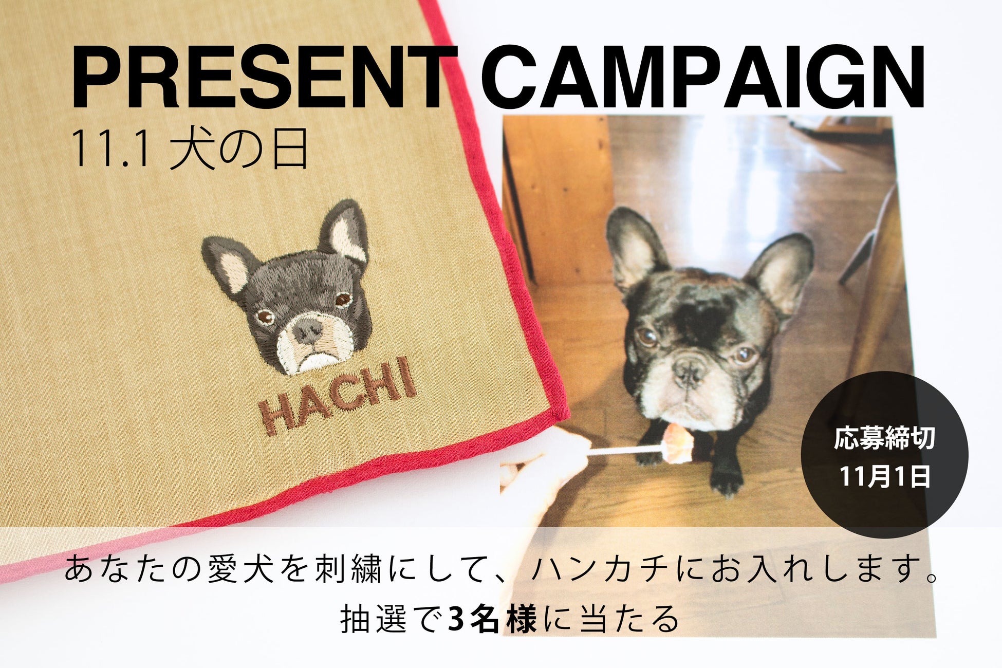 ~愛犬の刺繍を入れたオリジナルハンカチーフが当たる!プレゼントキャンペーンも同時開催~