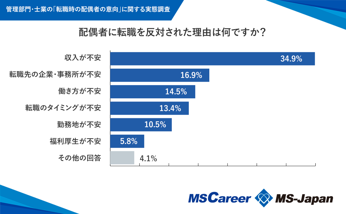 【転職を反対される理由第1位は「収入が不安」で全体の34.9%】