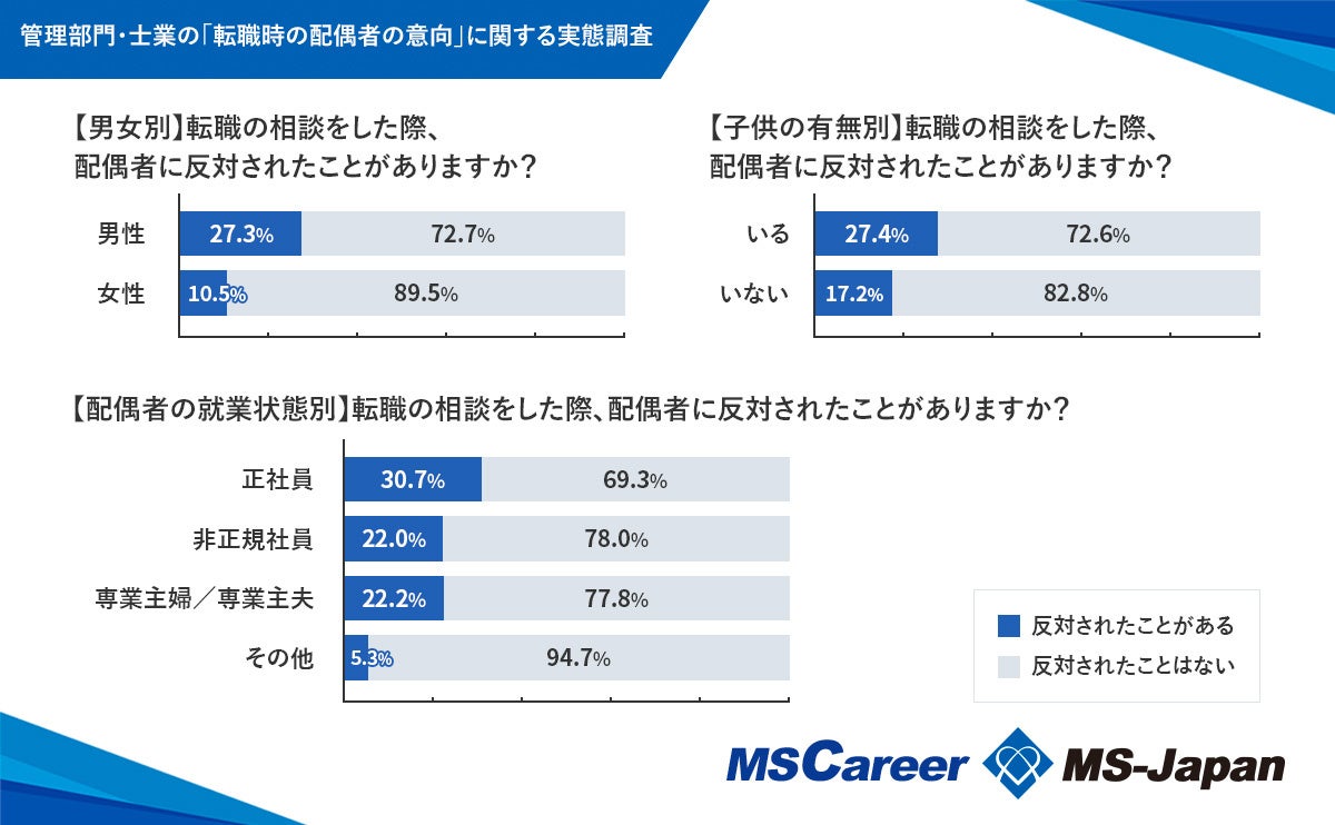 【管理部門・士業のおよそ4人に1人が配偶者に転職を反対されている】