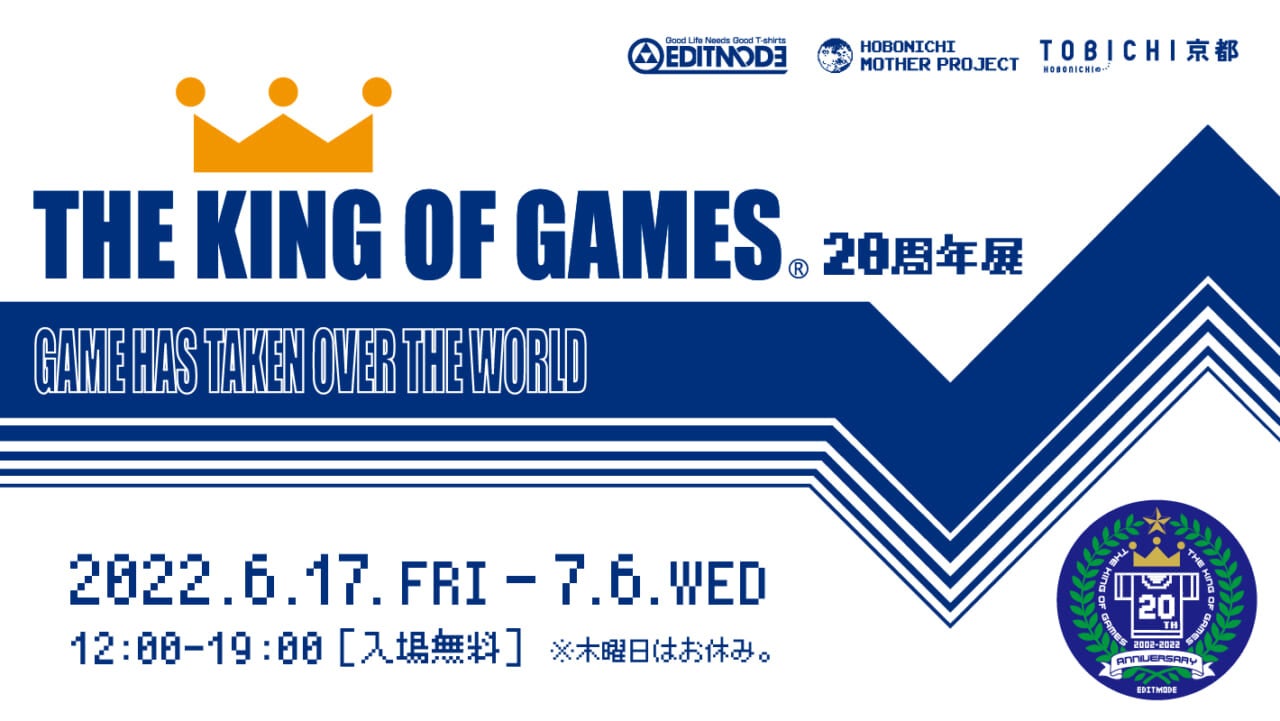 発売に先がけて、6月17日(金)より、「TOBICHI京都」で開催する「THE KING OF GAMES 20周年展」でふたつのTシャツをお披露目します。詳しくは https://www.1101.com/n/s/mother_project/kog_202206/ にてご覧ください。