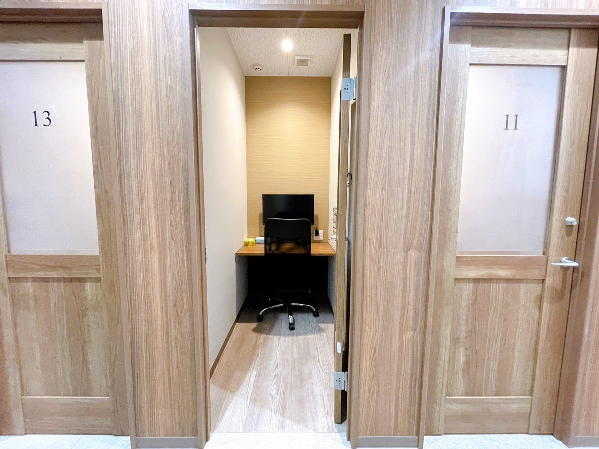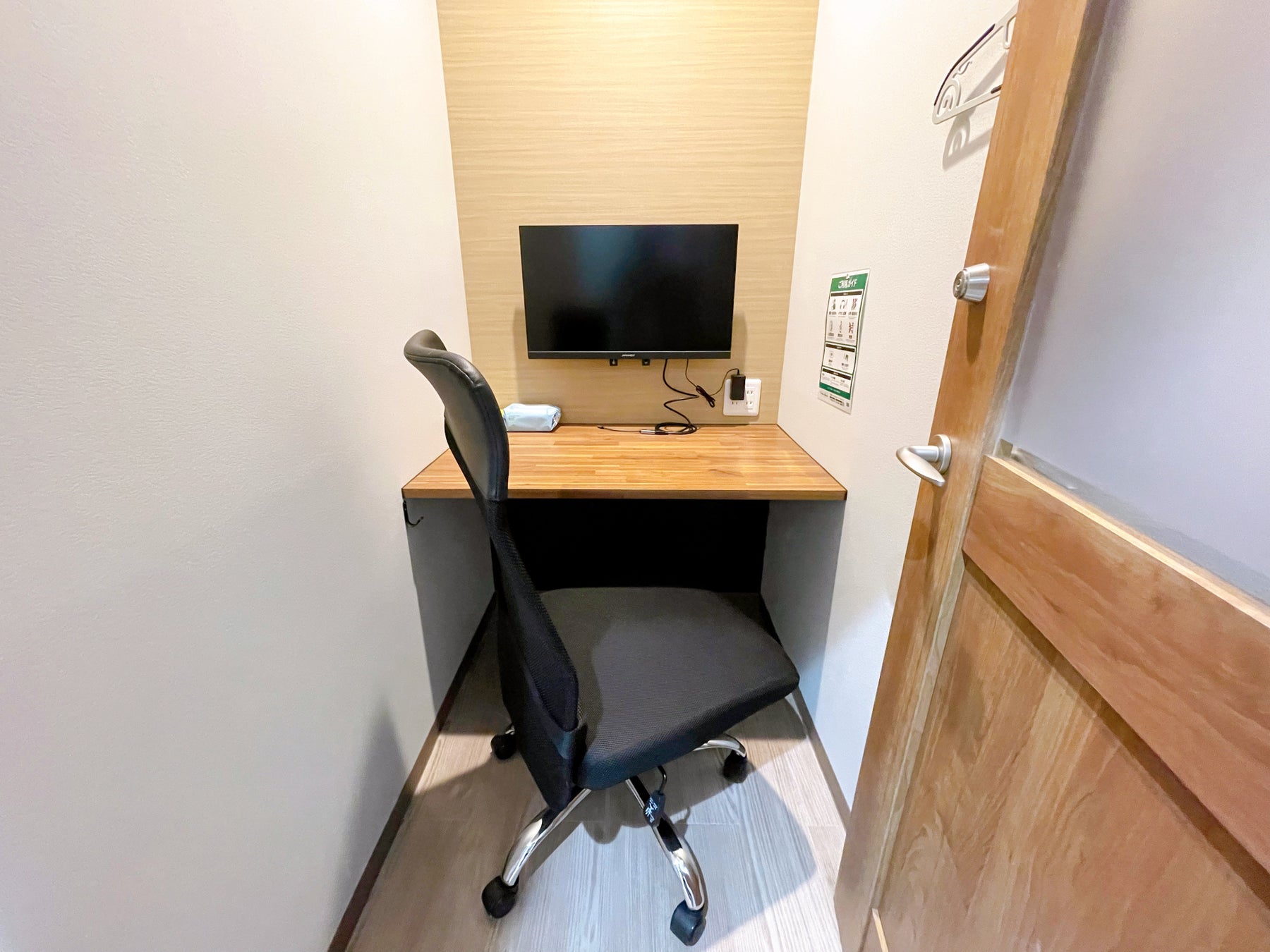 1名用個室の机幅は、ゆったりした空間をご提供。全室モニター完備のため、web会議はもちろん、いつも以上に集中して仕事・勉強したいときに最適です。