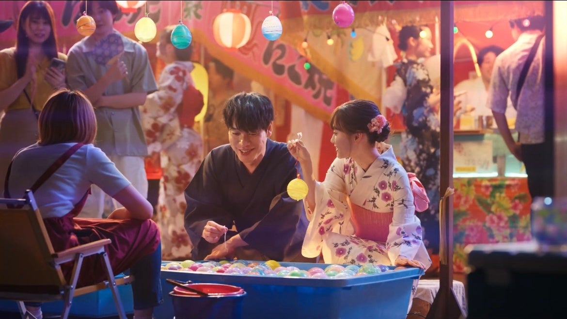 「夏の恋」篇:舞台は夏デートの定番、夏祭り。幼少期に2人で楽しんだ地元の夏祭りを、20年越しに大人になった2人が楽しむ様子を川島さんと山下さんが演じました。甘酸っぱい恋模様を「デリバリーはmenu!」のワンフレーズで情緒豊かに表現しています。