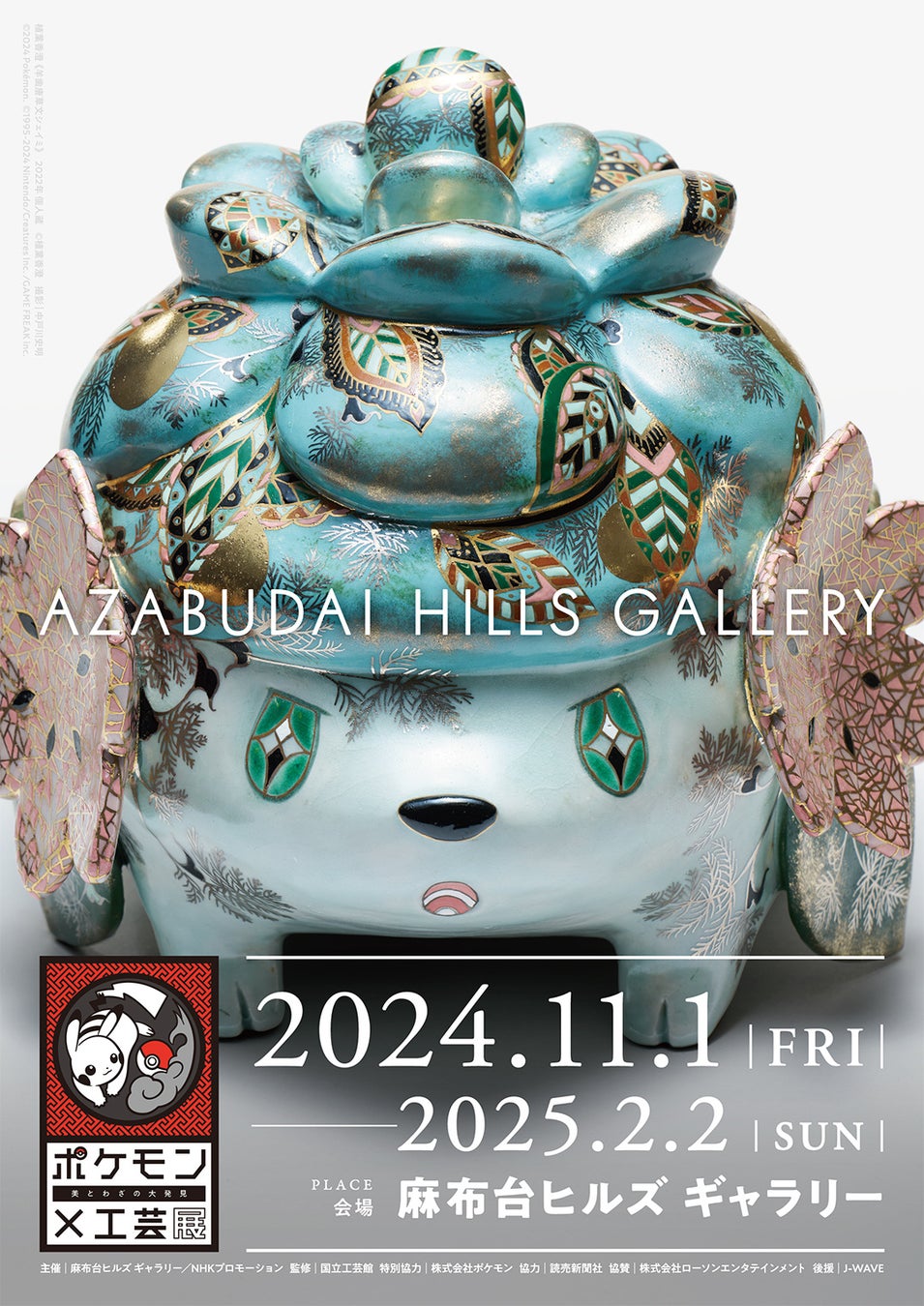 麻布台ヒルズ ギャラリー(麻布台ヒルズ ガーデンプラザA MB 階)は、2024 年11 月1 日(金)から2025 年2 月2 日(日)まで「ポケモン×工芸展ー美とわざの大発見ー」を開催します。
