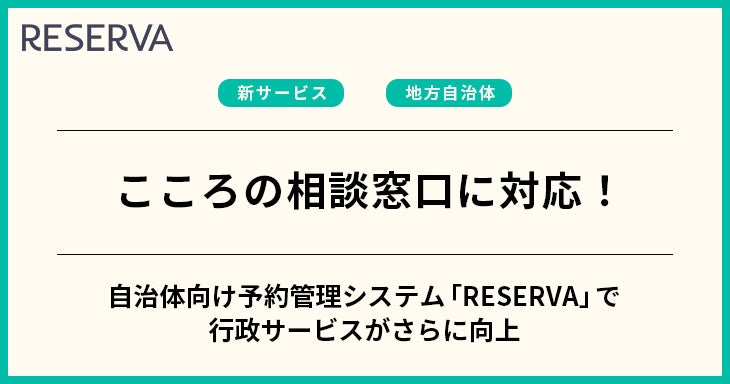 【地方自治体向け】登録事業者数トップクラスの「RESERVA」、こころの相談窓口に導入できる予約受付システムを提供開始