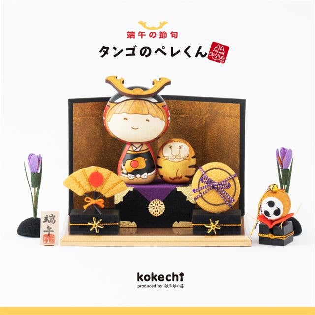 リサ・ラーソンのJAPAN SERIESの中でも特に人気の「こけしのペレ」が、五月人形「タンゴのペレくん」になりました!シリーズの中でもとりわけ朗らかな雰囲気をしたペレの印象はそのままに、端午の節句に合わせてひとつ成長した姿を見せてくれた凛々しい若武者のペレ。「虎」飾りも、もちろんリサの原型を元に作られたこけしです。立派な兜飾りを被り、少し得意げな表情のペレ。いつも手に抱えている猫を軍配(ぐんばい)に持ち替えて、なんだかとっても誇らしげ!男の子の健やかな成長を願う「虎」もこけしで作られており、扇子、陣傘、太鼓などの小物は京都で作られたちりめん細工です。セットになっている金屏風や菖蒲も一緒に飾って、リサ・ラーソンのこけしと一緒にこどもたちの健康と成長を願いましょう!