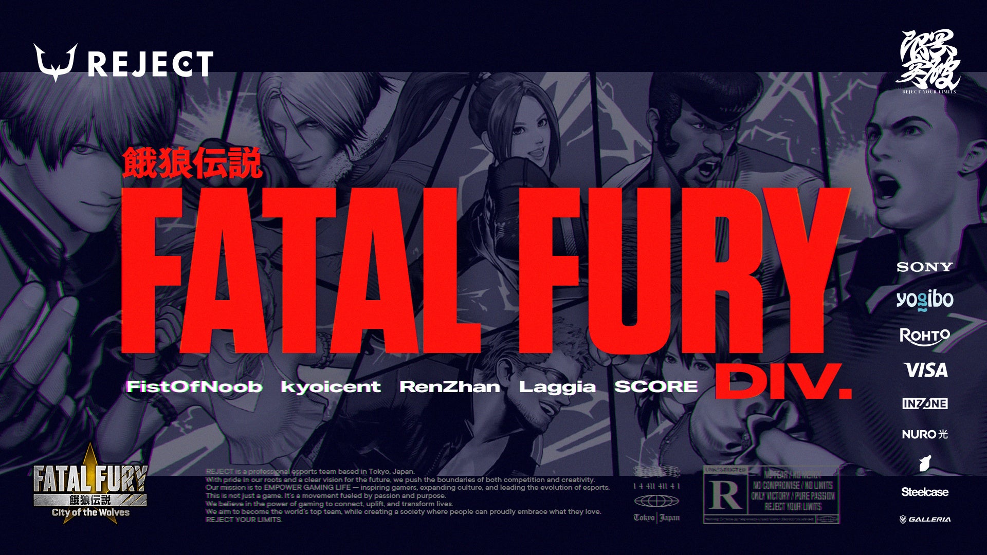 株式会社REJECT(本社:東京都港区、代表取締役:甲山翔也)が運営するeスポーツチーム「REJECT」は、新たに餓狼伝説部門を設立し、選手5名が加入したことを発表いたします。