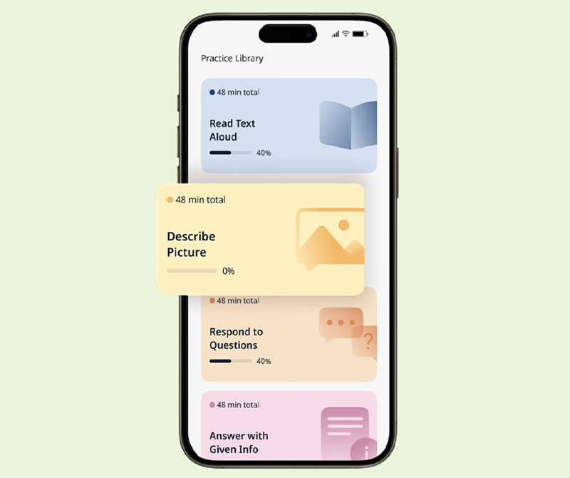 TOEIC Speaking Testと同じ問題構成で練習できるため、実際のテスト問題に沿った対策が可能です。
