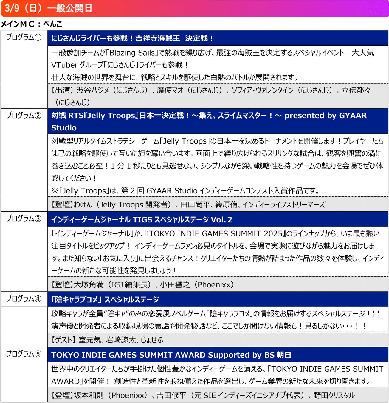 ■にじさんじライバー、室元気、岩崎諒太、野田クリスタルら多彩なゲストも出演!『TOKYO INDIE GAMES SUMMIT 2025』ステージイベント出演者発表