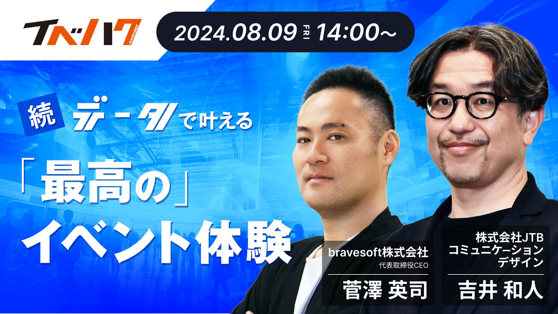 データを活用して最高のイベント体験の実現を語った、8月2日「V-CUBE EVENT SUMMIT 2024」でのbravesoft CEO菅澤英司とJTBコミュニケーションデザイン吉井和人氏によるセッションの続編として、語りきれなかった部分を深堀りします。