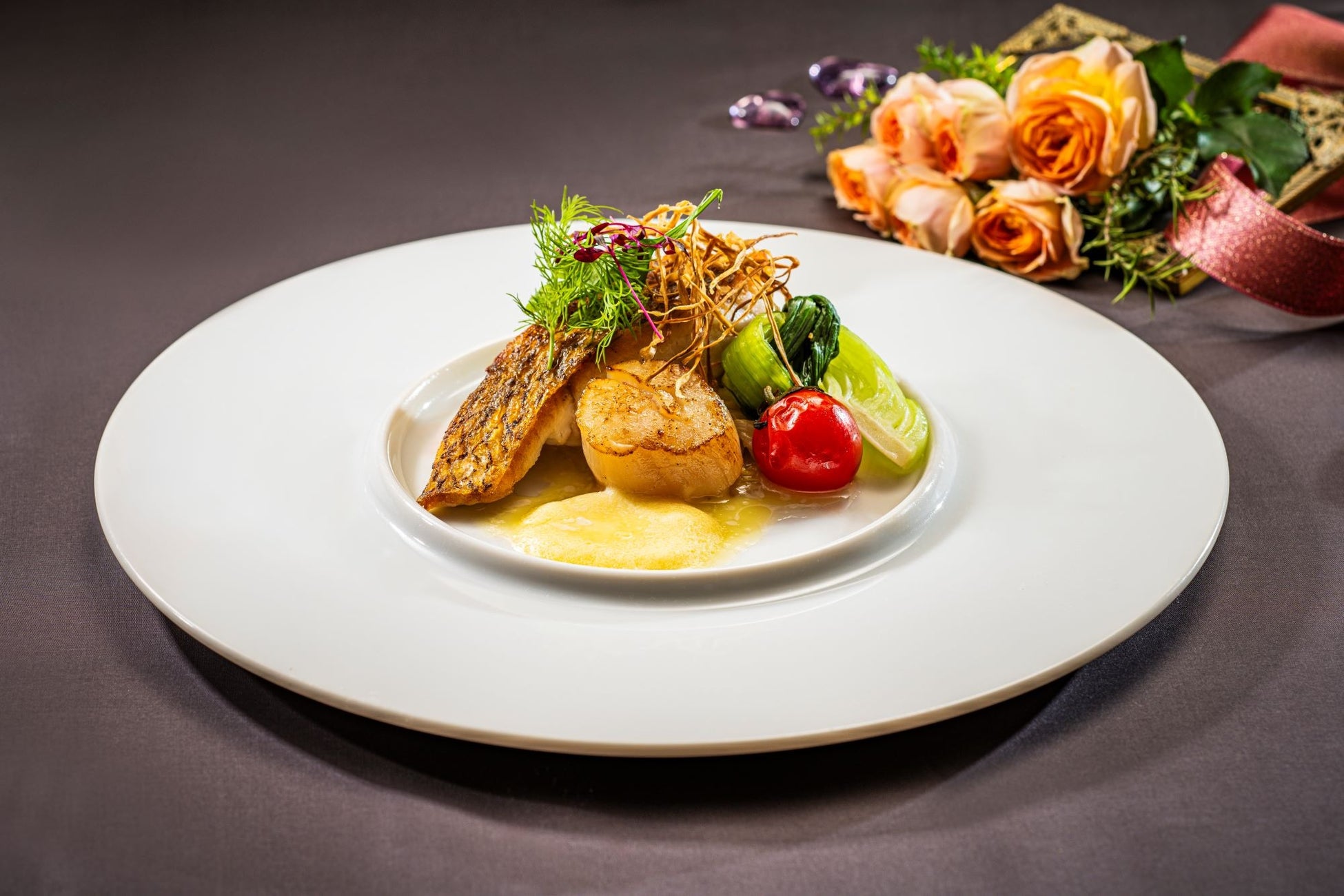 <魚料理>真鯛と帆立貝のポワレ ブールブランソース