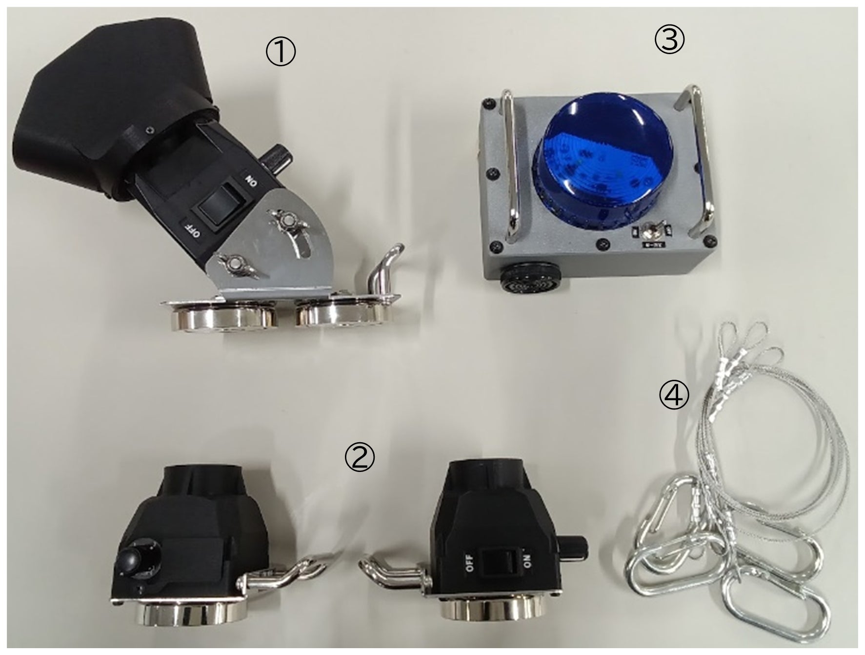 ③ブザー付LED灯(警告灯) ④落下防止ワイヤー(4本)