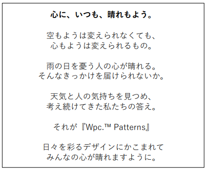 【Wpc. Patternsブランドサイト】:https://wpc-patterns.jp/