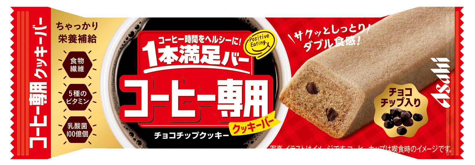 ・コーヒー飲用時に「1本満足バー コーヒー専用」を一緒に喫食することで、ヘルシーなコーヒー時間をお楽しみいただけます。