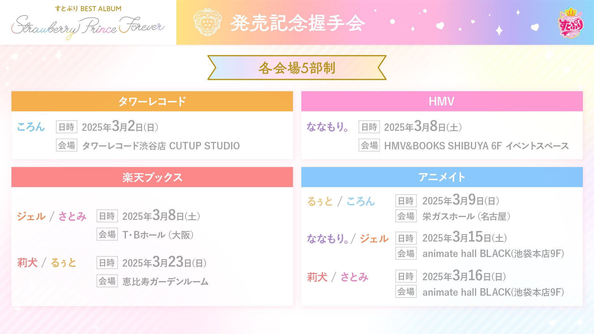 株式会社STPR (本社:東京都渋谷区 代表:柏原 真人、以下STPR)は、所属の2.5次元アイドルグループ「すとぷり」初のベストアルバムである、「すとぷり BEST ALBUM 『Strawberry Prince Forever』」を2025年1月8日(水)に発売することを決定し、2024年10月26日(土)に予約受付を開始したことをお知らせいたします。