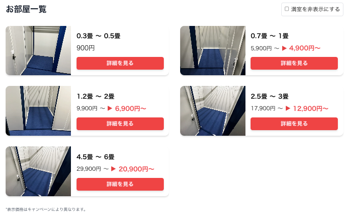 荷物以上に大きな部屋を借りてしまうことや、狭すぎて荷物が入らなかったなんていうトラブルを回避できます。