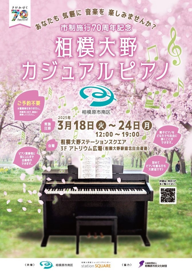 相模原市南区と連携してストリートピアノ「市制施行70周年記念 相模大野カジュアルピアノ」も3月18日(火)から7日間設置