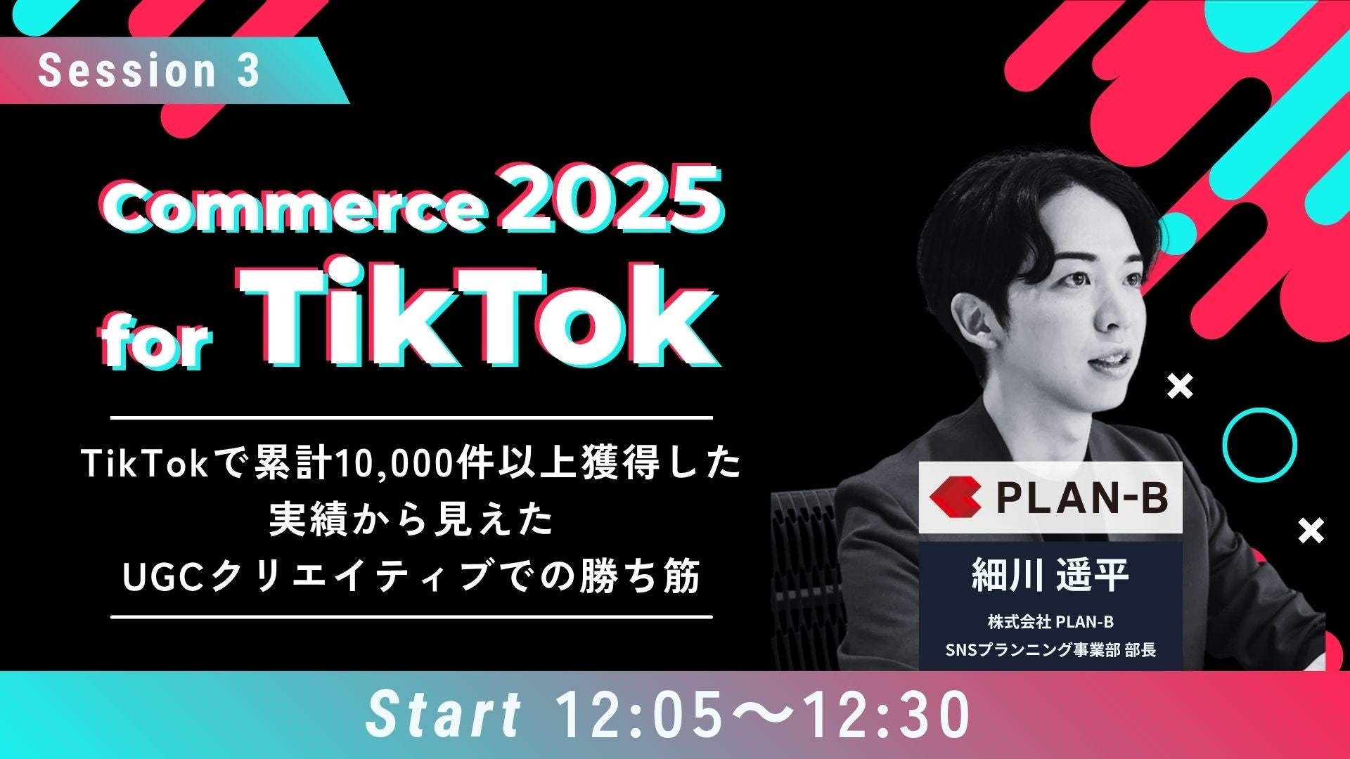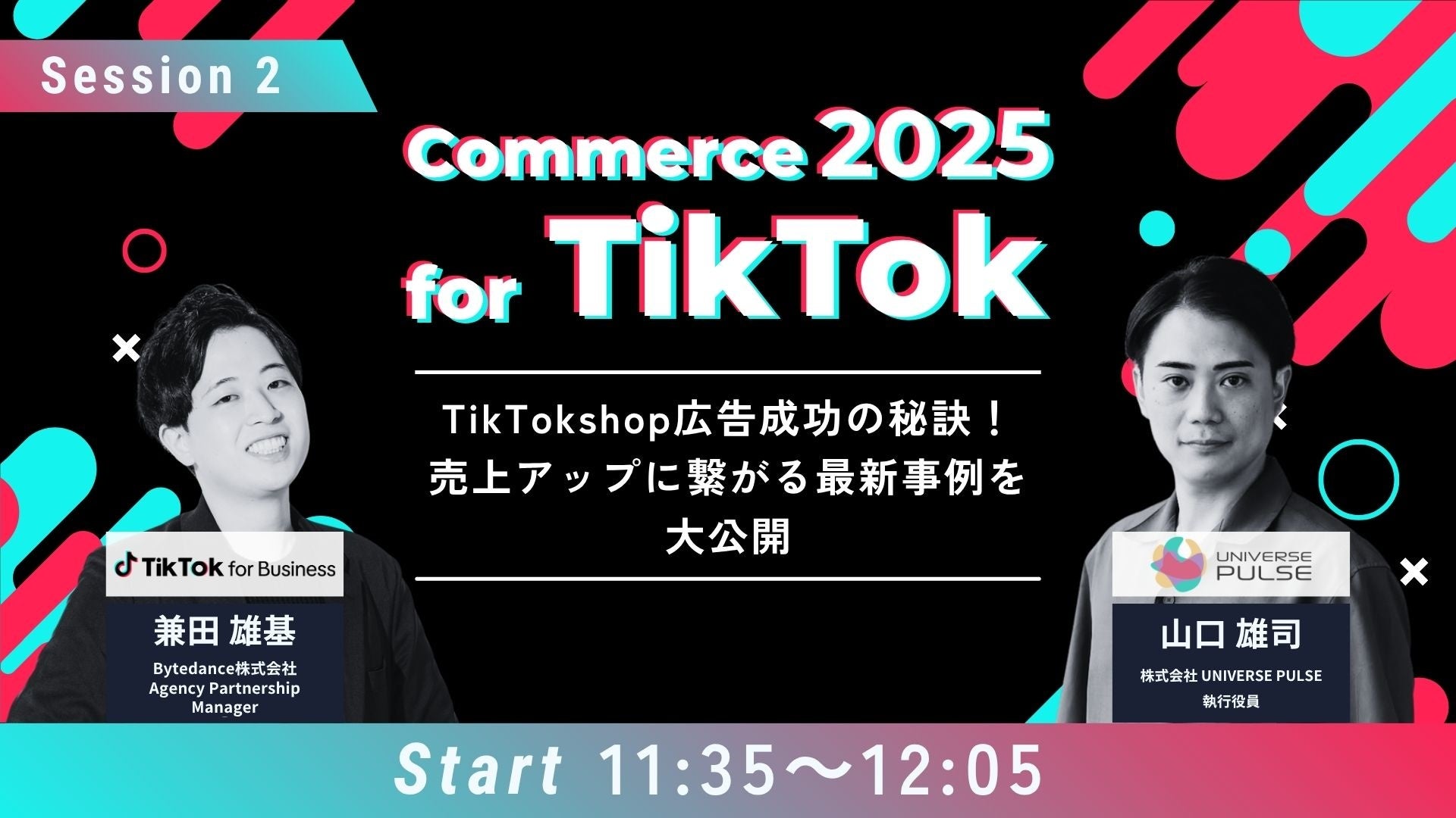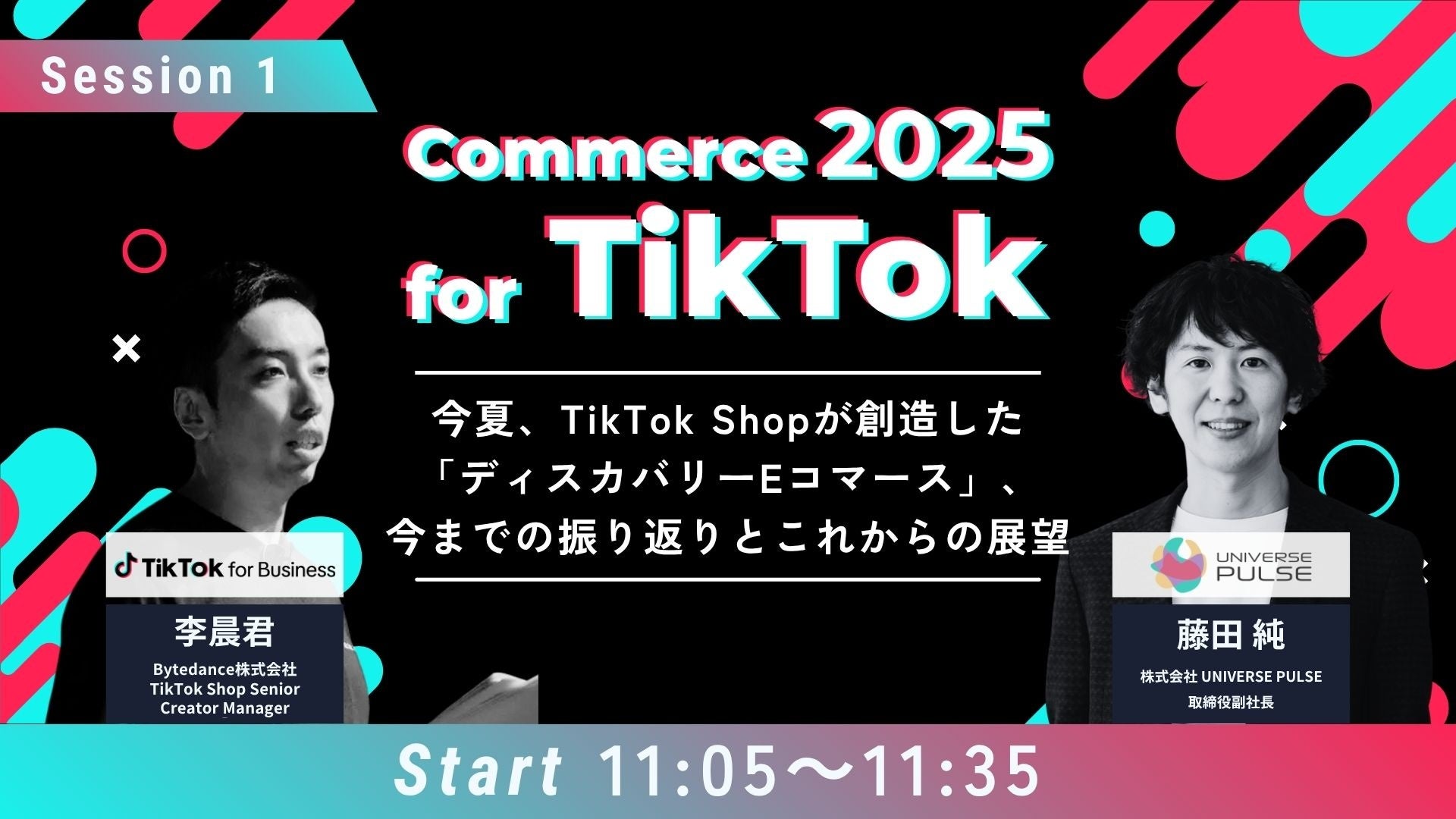 「Commerce 2025 for TikTok」では、国内外の第一線で成果を生み出すSNSマーケターが集結します。縦型ショート動画、インフルエンサー協業、ライブコマース、UGC活用、ファン化──。次世代の “共感 × 発見” を購買へつなげる最新事例と実装ノウハウを余すところなく共有します。