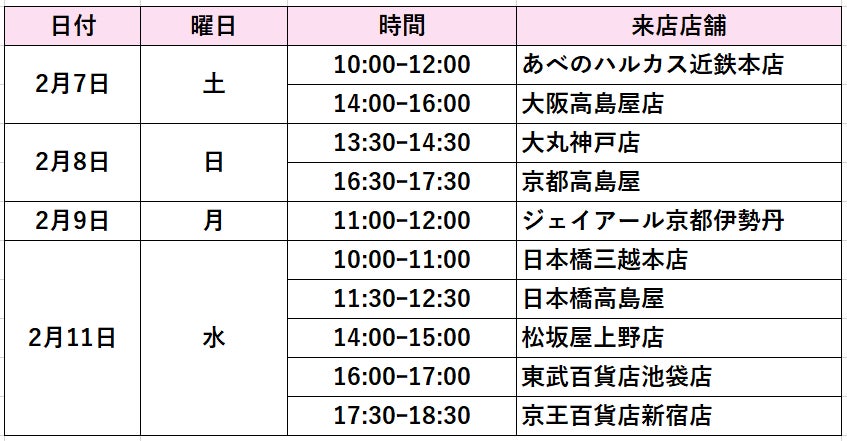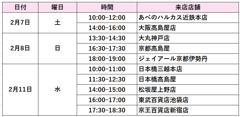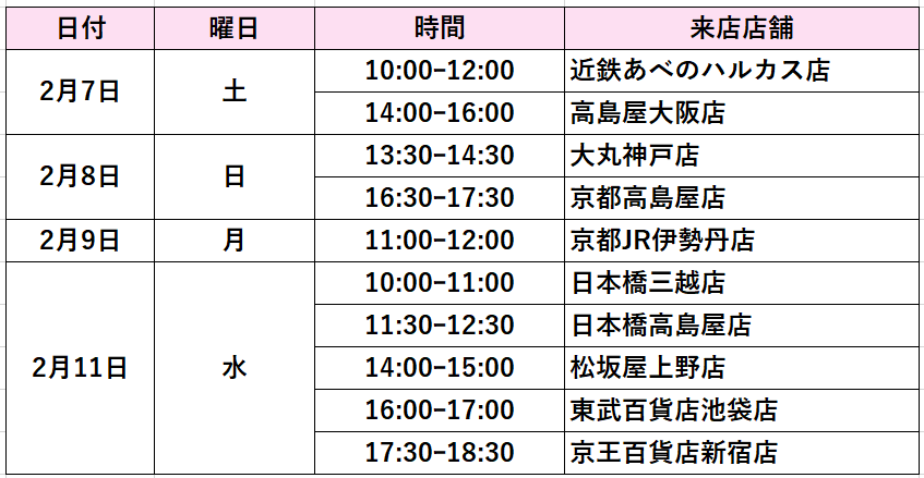 ※ 感染症対策等、各百貨店の都合により、上記日時は変更になる場合があります。