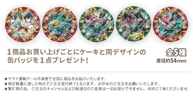 特典缶バッジはお選び頂いたケーキと同じデザインとなります。