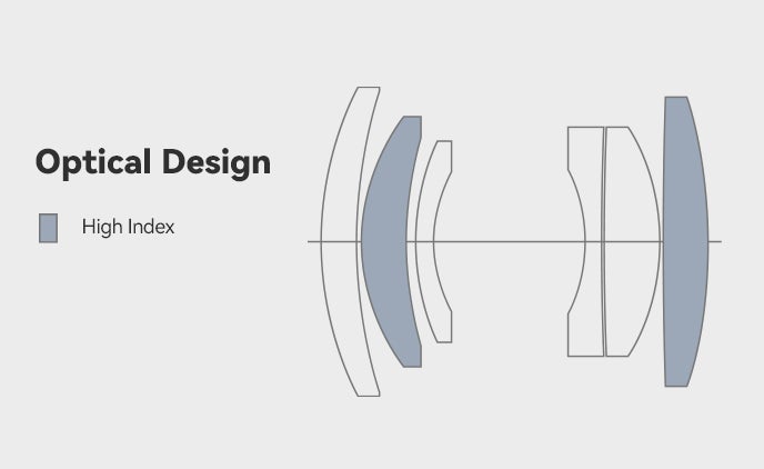 光学設計:高屈折率レンズ2枚を含む5群6枚構成で、色差の抑制や球面収差の制御を効果的に行うことができます。さらに、7枚羽根の絞りを採用し、滑らかなボケ味を実現します。