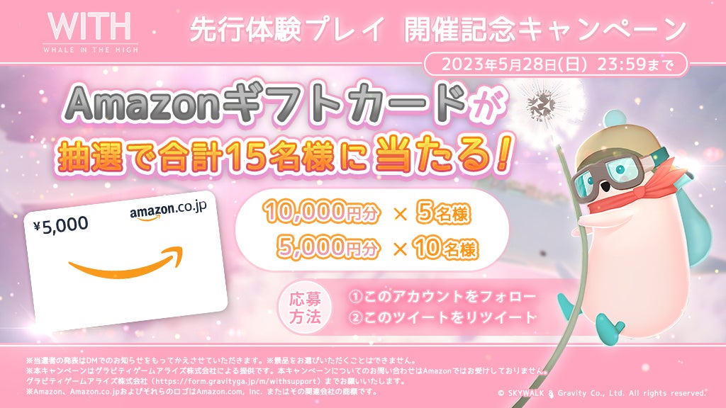 グラビティは、癒し系放置型モバイルゲーム「WITH: Whale In The High(以下、WITH)」について、本日2023年5月22日(月)14:00から2023年5月25日(木)21:00まで先行体験を開催いたします。