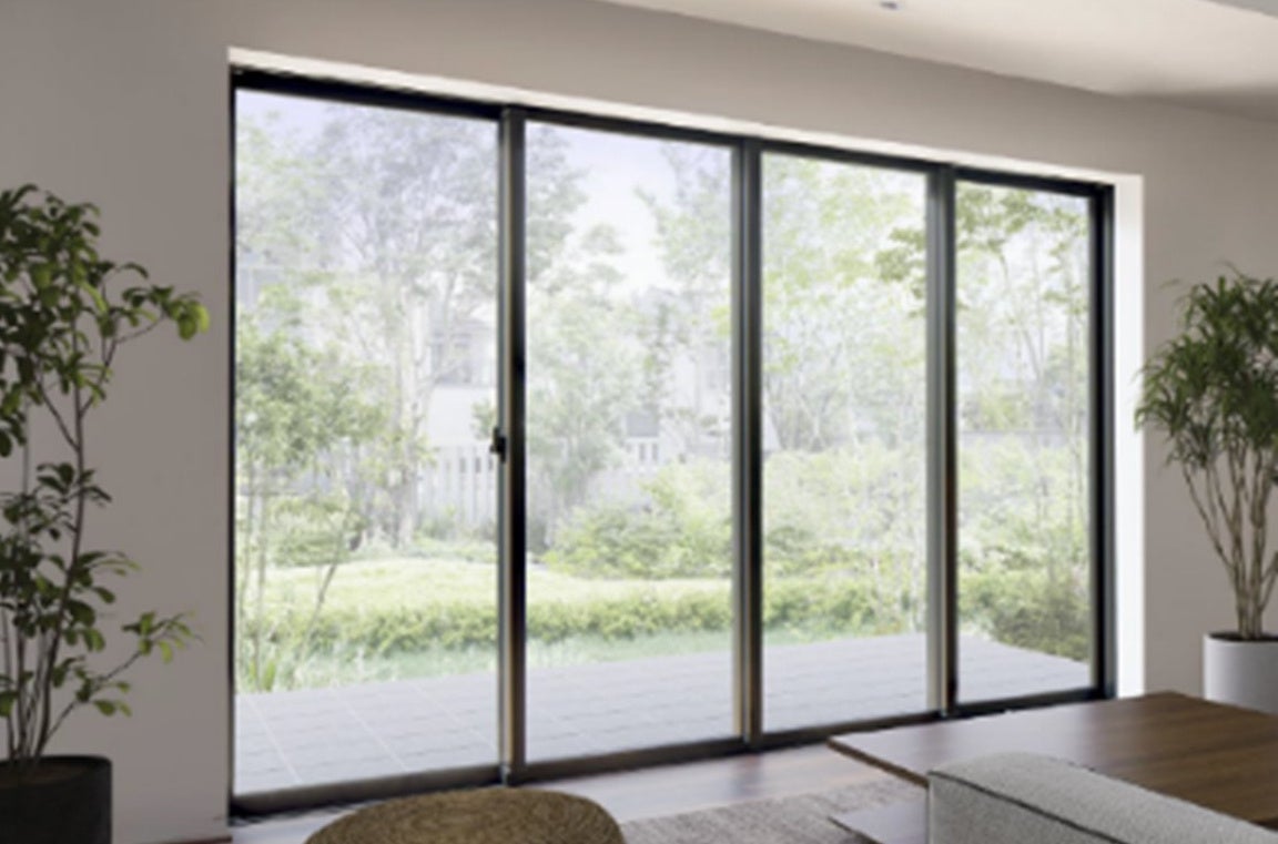 従来、断熱性能を高めるためには樹脂サッシやトリプルガラスの採用が一般的でしたが、窓サイズや防火性能、デザイン面で制約があり、重鉄構造や大開口を伴う住宅では適用できるサッシに限りがあるという課題がありました。当社はこうした課題を解決するため、「ロングライフ次世代複合サッシ(※1)」を開発。高強度アルミを使用してフレームをスリム化し、熱伝導率の低いガラス面積を拡大させることで、耐火性・耐久性・強度に優れたアルミ樹脂複合サッシを実現しました。これにより大開口と樹脂サッシレベルの断熱性を同時に実現させました。