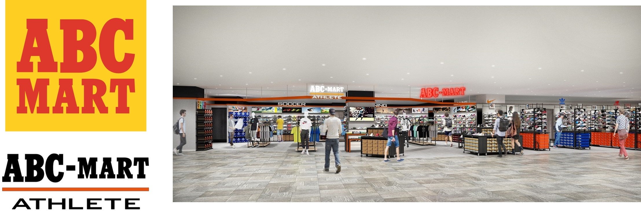 子どもから大人までライフスタイルや用途に合わせて、 足元を提案する「ABC-MART」と、ランニング、フィットネス、サッカー、バスケットボールなどのパフォーマンス商品を取り揃えたスポーツ用品専門店「ABC MART ATHELETE」がグランデュオ立川に11月2日(木)よりオープンします。
