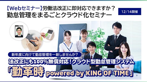 本セミナーでは、「頻繁に改正される法律への対応で、勤怠管理業務が圧迫されている!」というお客様向けに、労務管理に関する直近の法改正にも触れながら、クラウド型勤怠管理システム『勤革時』をご紹介いたします。