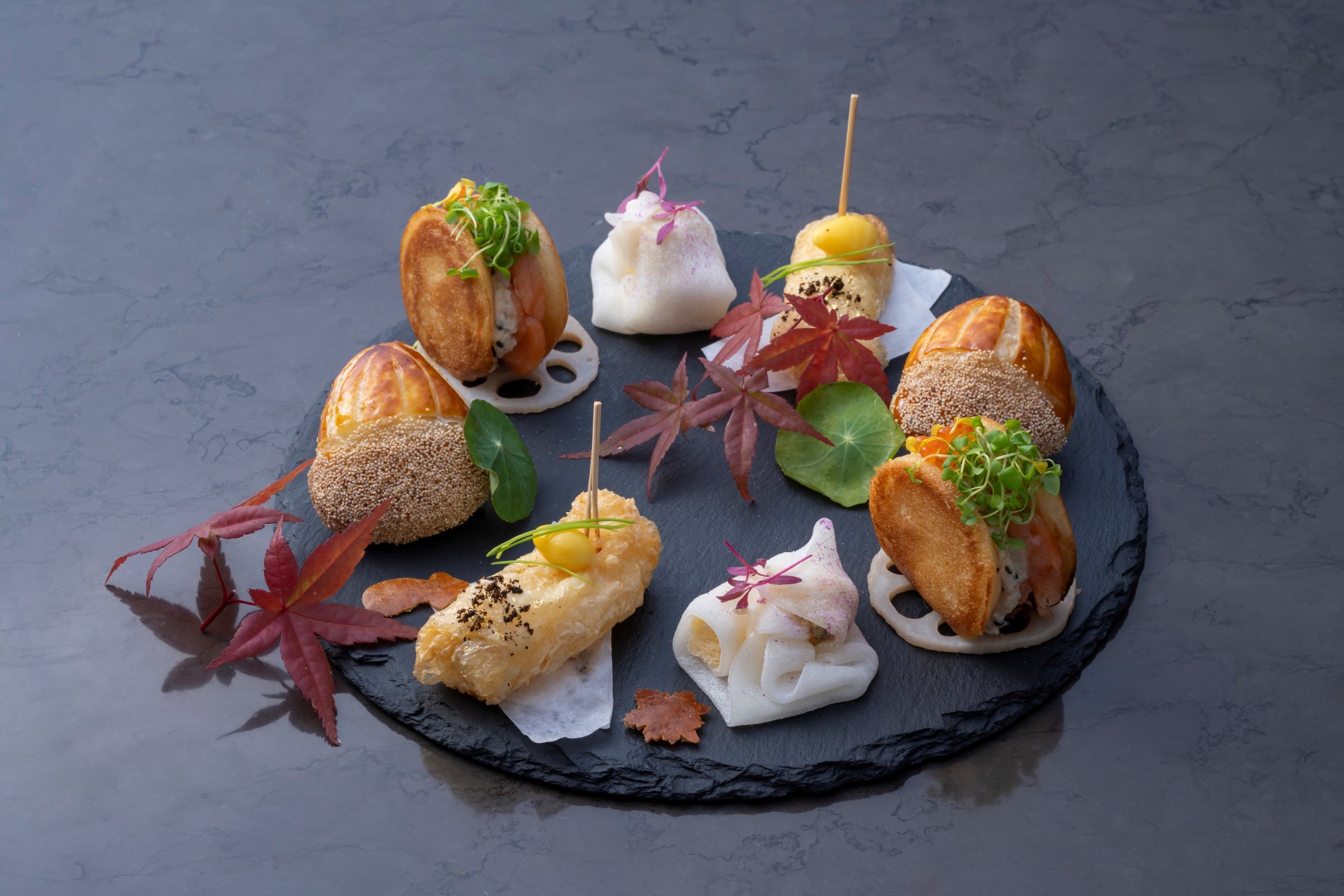 また4種のセイボリーでは、リッチな味わいのフォアグラとまろやかな梨のマリアージュを楽しむ「フォアグラと梨の大福包み」や、旬のきのこをたっぷり使い京都ならではの湯葉を合わせた「きのこリゾットと湯葉」など、この時期らしい素材を贅沢に使った食べ応えあるメニューが登場いたします。