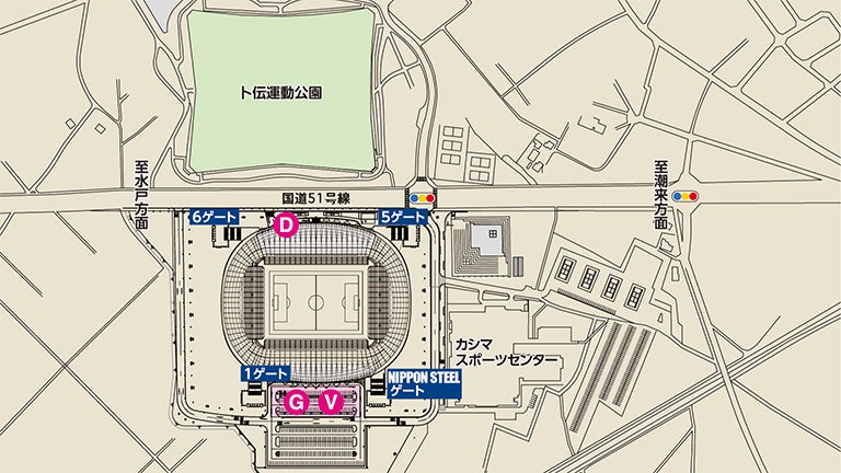 メルカリスタジアム G駐車場(12口)、V駐車場(8口)、D駐車場(4口)