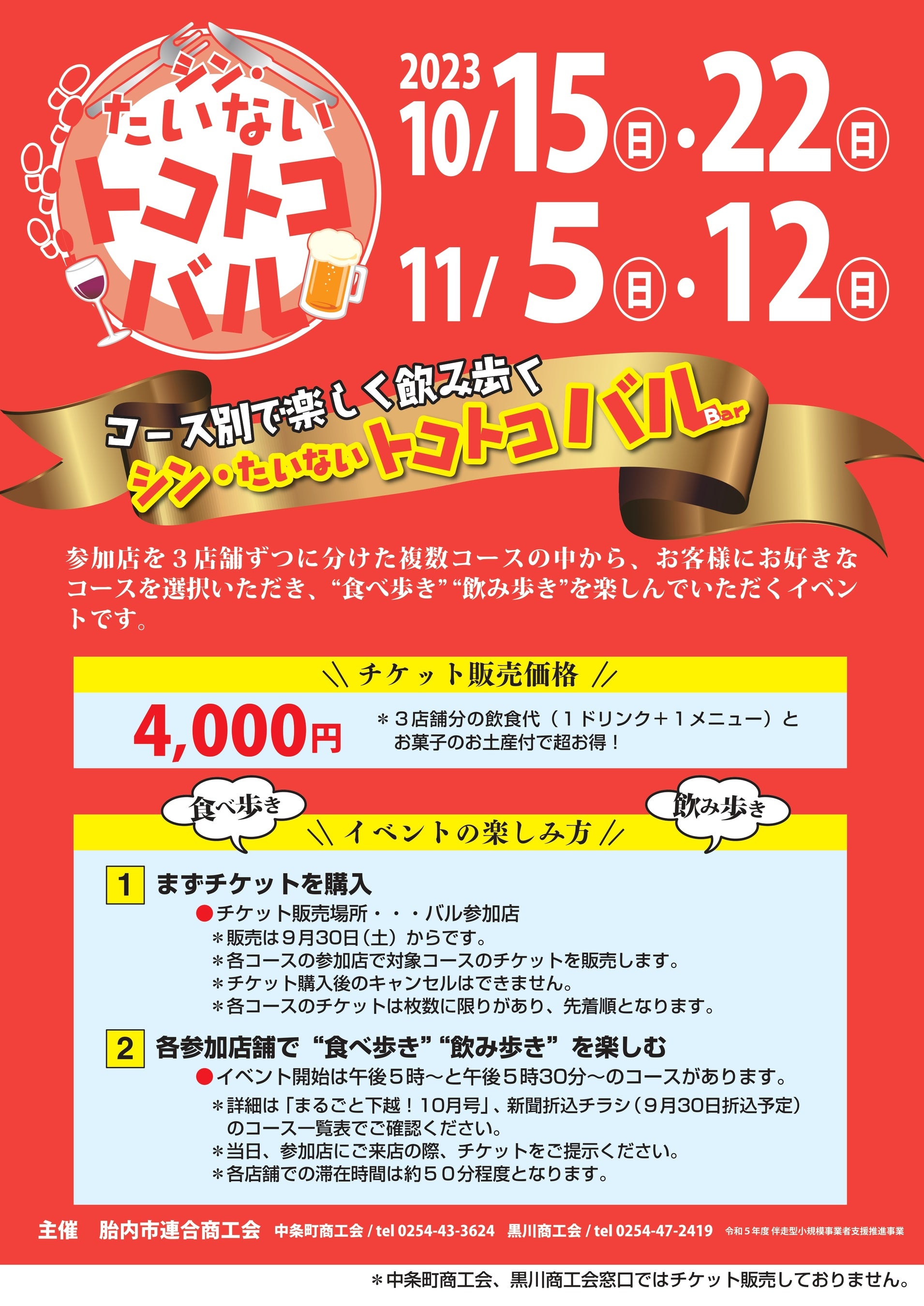 好きなコースを選んで“食べ歩き”“飲み歩き”「シン・たいないトコトコバルBar」を新潟県胎内市で開催