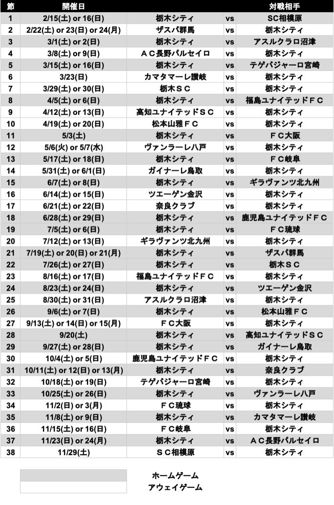 【栃木シティ】2025シーズン 年間対戦カード決定のお知らせ