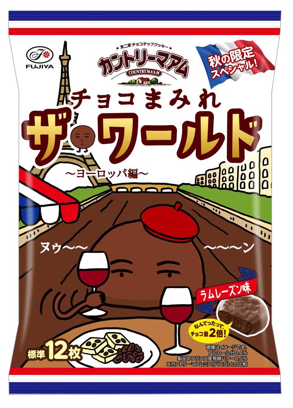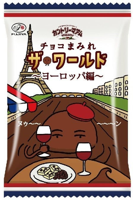 世界を旅するまみれさんが次に立ち寄ったのはヨーロッパ! 「カントリーマアムチョコまみれザ・ワールド(ヨーロッパ編)ミドルパック」