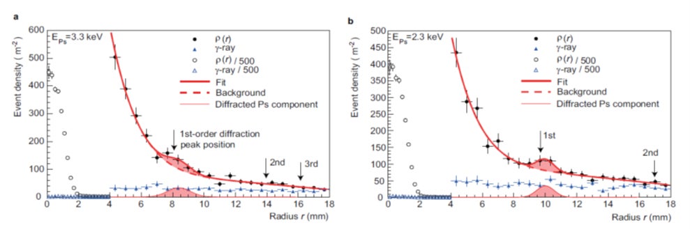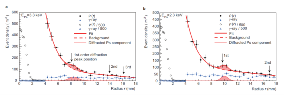 こうして、ポジトロニウムがグラフェンの原子で回折を起こし干渉によって得られるピークが初めて観測されました。