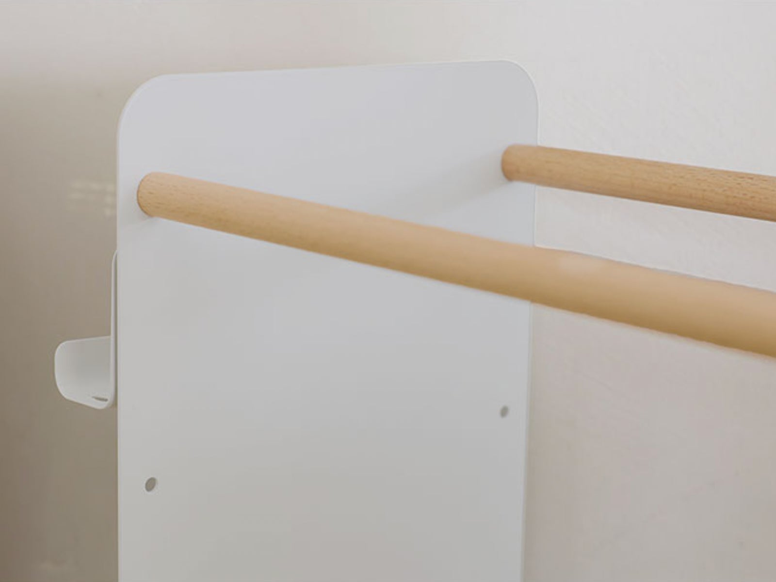 両サイドのスチール板と2本のポールが、高さのあるアイテムも支えてくれます。