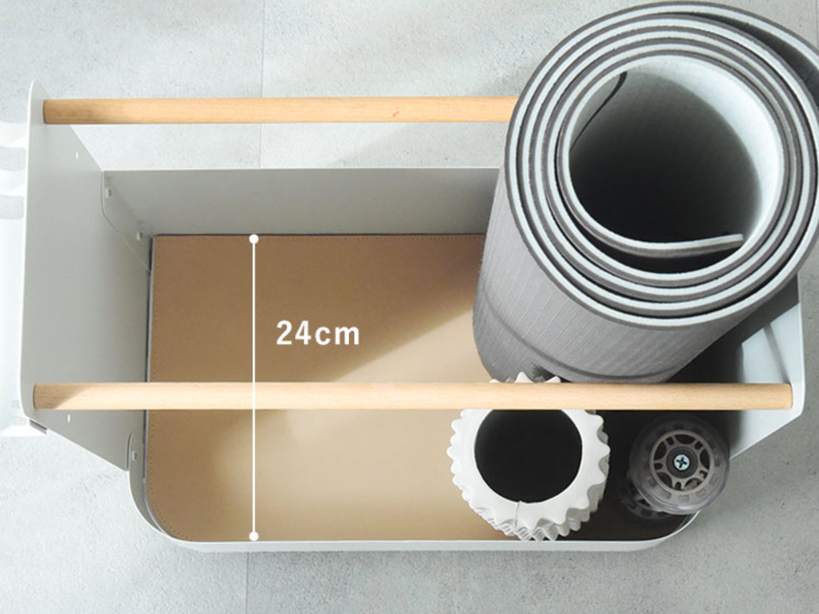 奥行が約24cmあるので、マットなどを立てた前に、ローラーやダンベルを置くことも。