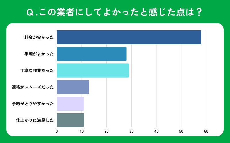 ・依頼のきっかけは「落とせない汚れを落としたい」という考えから「実績」を重視して業者を選ぶが、最終的に満足したポイントは「価格」