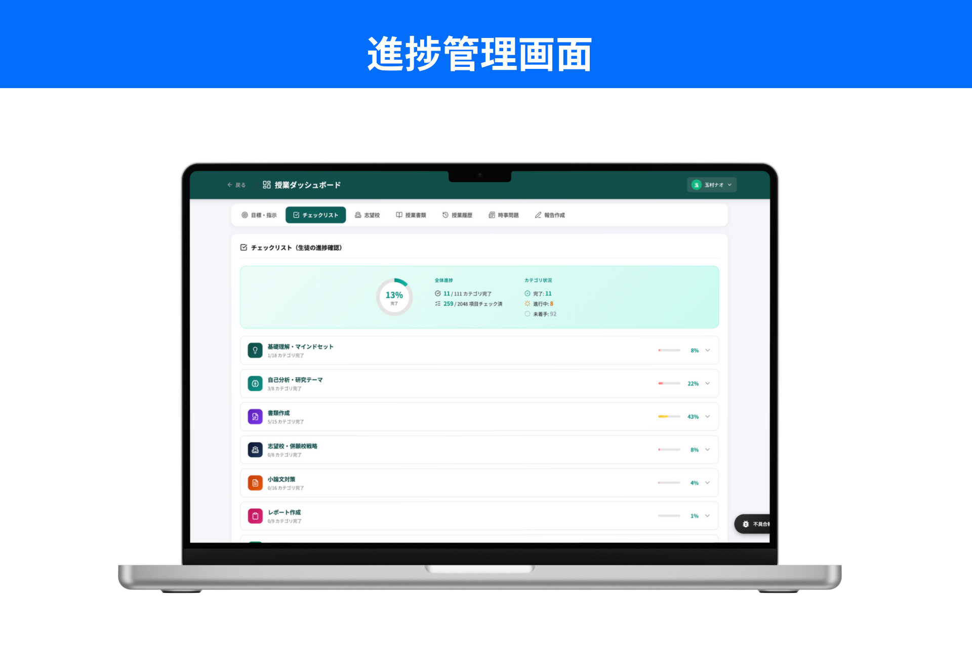 生徒管理プラットフォーム:学習進捗管理/課題提出状況管理/成果物管理