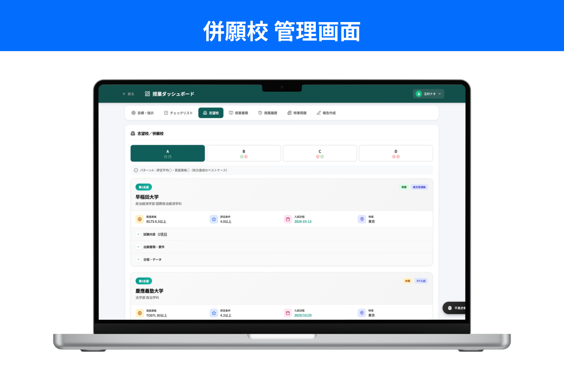 総合型選抜・学校推薦型選抜に特化した高校・学習塾向け学習管理システム