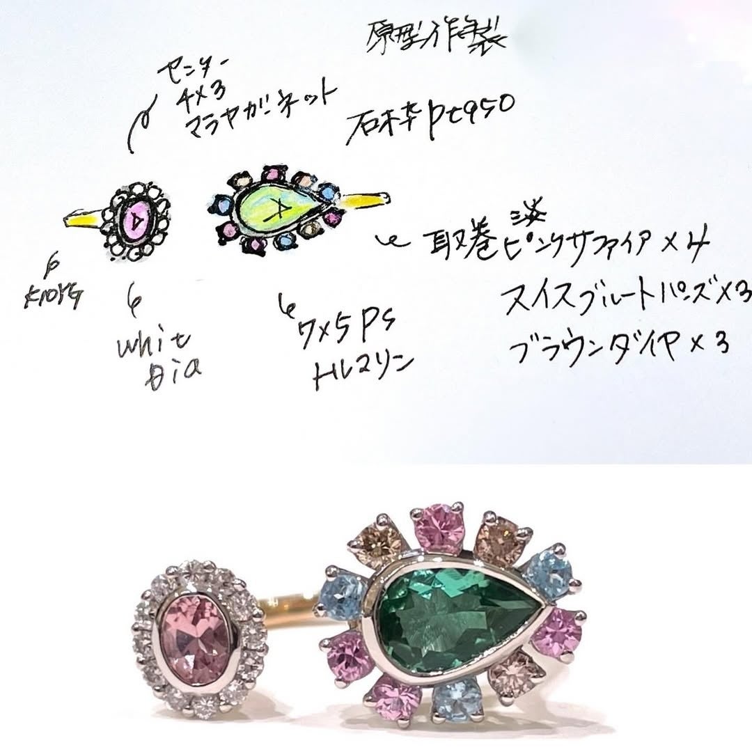 オーダーは初めてという方もご安心ください。お好みの宝石の色や形を選びながら、イラストを描いたり、石を並べながら、ご提案いたします。
