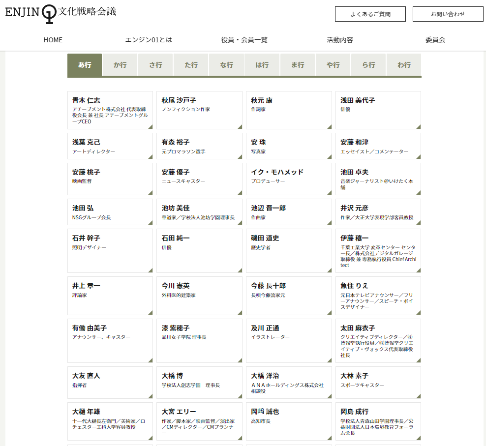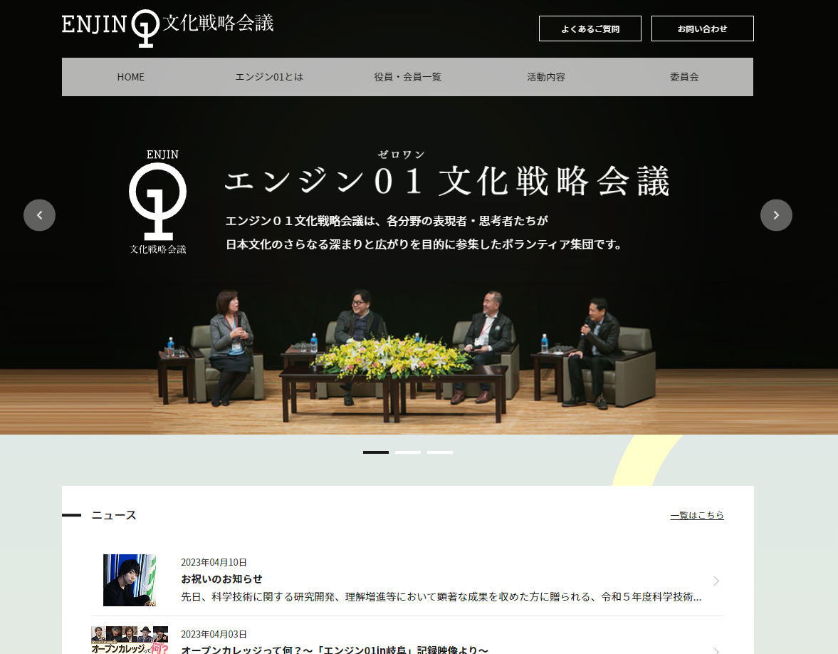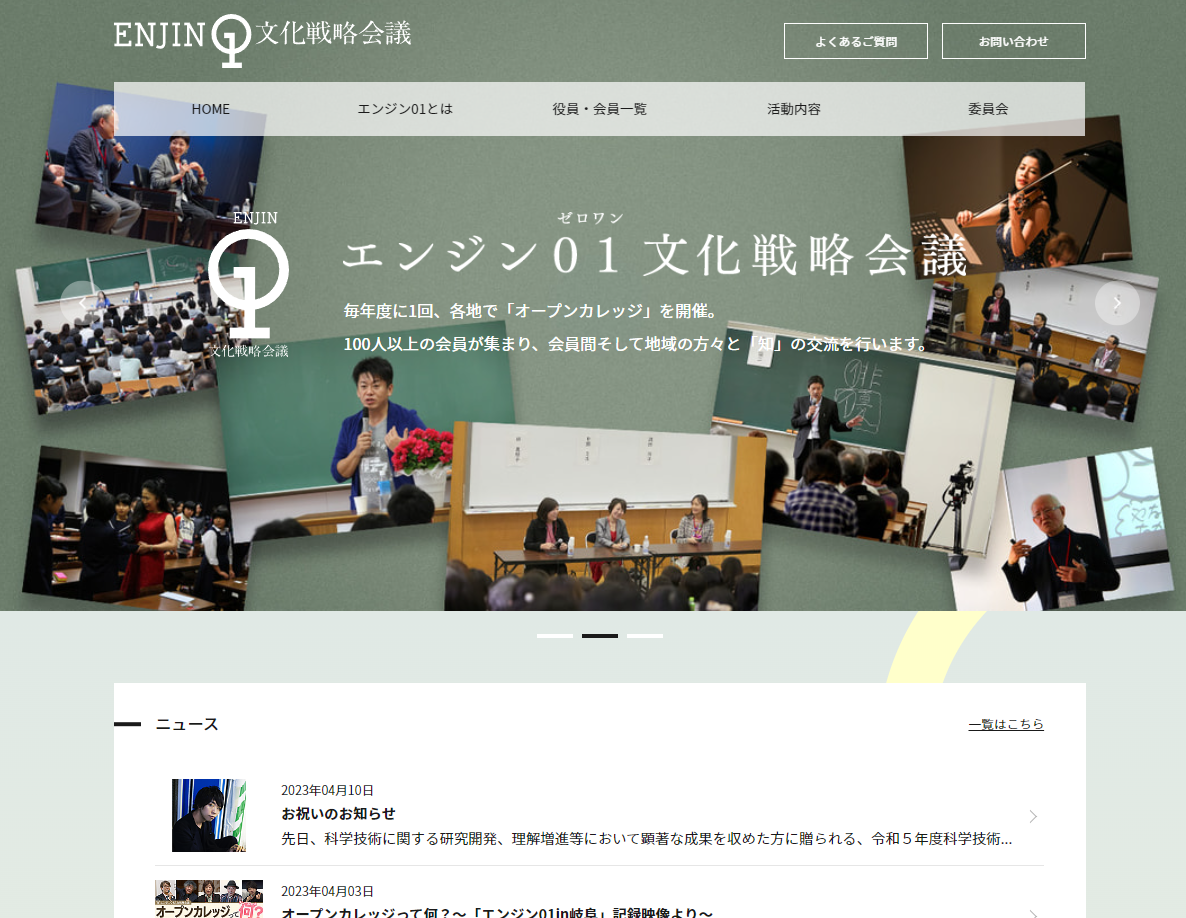 エンジン01(ゼロワン)文化戦略会議は、著名な芸能人やアーティスト、学者や実業家など、各業界・各分野の指導者・表現者・思考者たちが、日本文化のさらなる深まりと広がりを目的に参集したボランティア集団です。芸術・科学・文化・スポーツから経済まで、異分野の才能が結集し、相互に学びあい、やがて21世紀の日本の道を照らす円陣となることを理想に掲げています。さまざまなご縁から推薦をいただき、個人会員に入会するに至りました。実業家の道で培ってきた経験、数多くのご受講生とともに歩んできたこの36年を通して得たものを、日本社会に還元していけるよう、活動に従事して参る所存です。