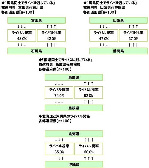 ◆隣県同士で意識? 鳥取県民の74%が「島根県」をライバル視、島根県民の82%が「鳥取県」をライバル視