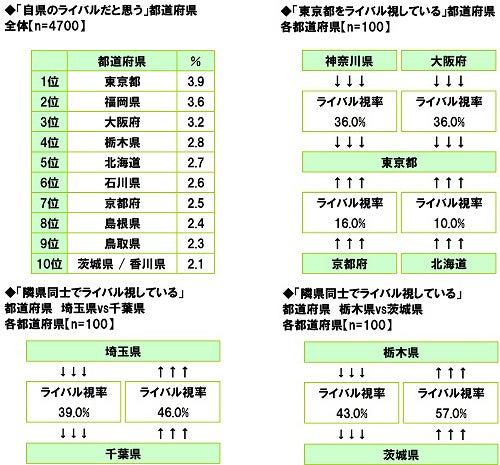 ◆全国から最もライバル視されているのは「東京都」 神奈川県民・大阪府民の36%がライバル視