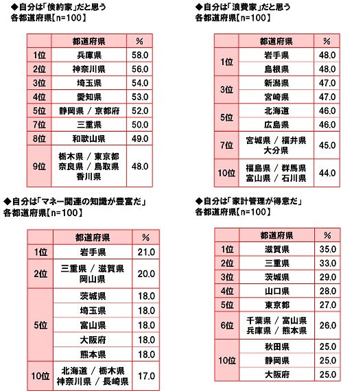 ◆“倹約家”1位は「兵庫県」、“浪費家”1位は「岩手県」「島根県」