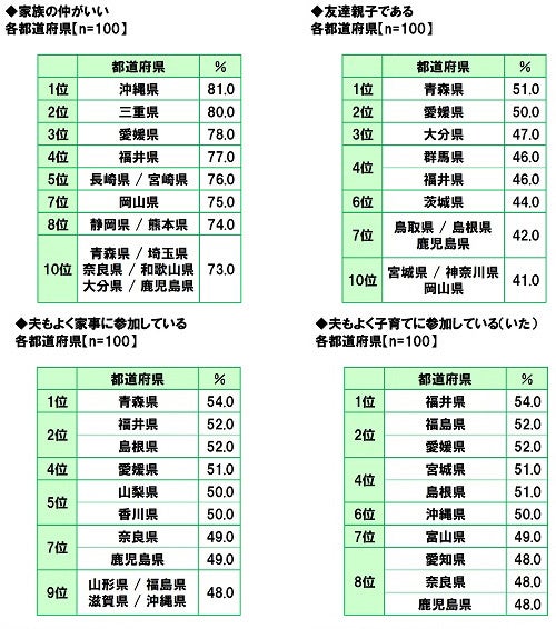 ◆仲良し家族が多い 1位「沖縄県」、友達親子が多い 1位「青森県」