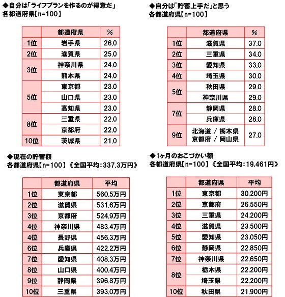 ◆“ライフプラン作りが得意”1位は「岩手県」、“貯蓄上手”1位は「滋賀県」