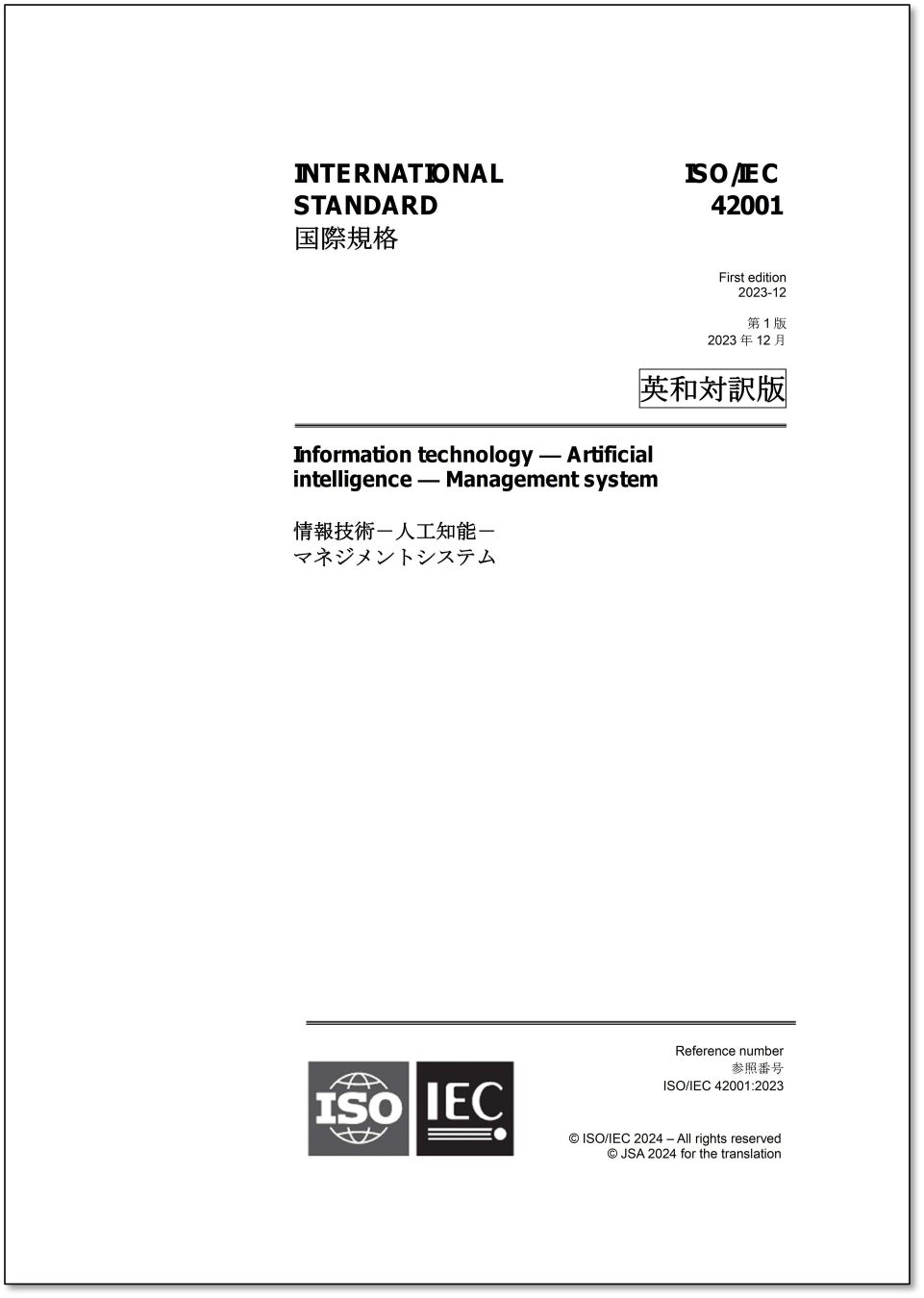 【注目のAIに関する国際規格の邦訳版が発行!】ISO/IEC 42001:2023「情報技術-人工知能-マネジメントシステム」の英・日対訳版を発行しました